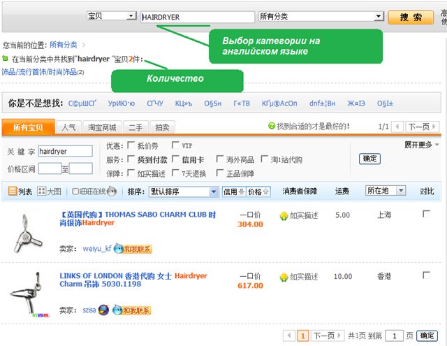 * на английском языке. И поисковик вам выдаст небольшое количество товара по этому списку. Пример , ищем фен , пишем на английском HAIRDRYER и получаем выбор всего 2.